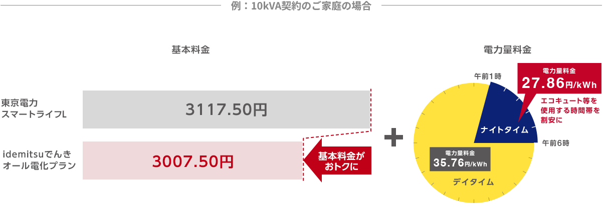 | 電力量料金 | 1時~6時: 27.86円/kWh | 1時~6時: 17.78円/kWh |