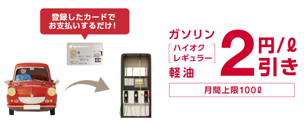 | 割引内容 | ガソリン代が2円/ℓ引き | 電気料金が毎月200円引き |