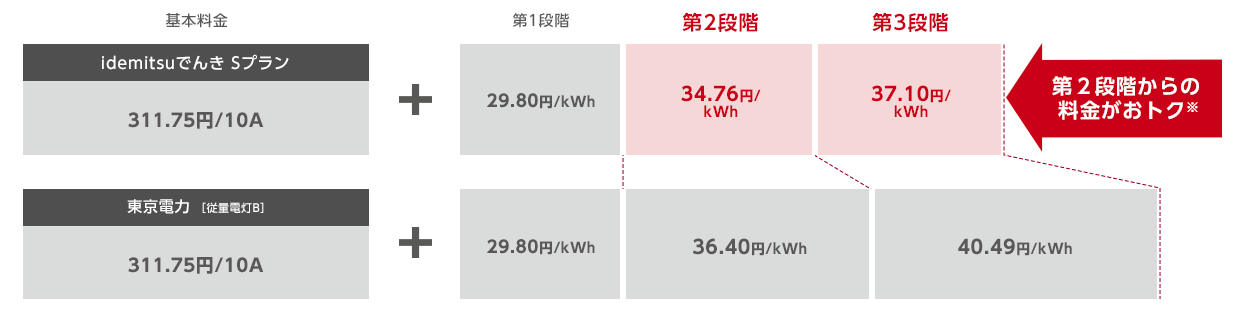 | 項目 | 東京電力 従量電灯B | idemitsuでんき Sプラン |